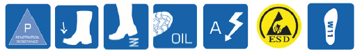 Verneskolett i skinn med aluminium vernetå. Non-Metallic spikersåle. Fukttransporterende nylonmesh innerfor. Uttagbar innersåle med MemoryTech Massage fotseng. DMXRide skum mellomsåle med sklisikker gummi yttersåle.